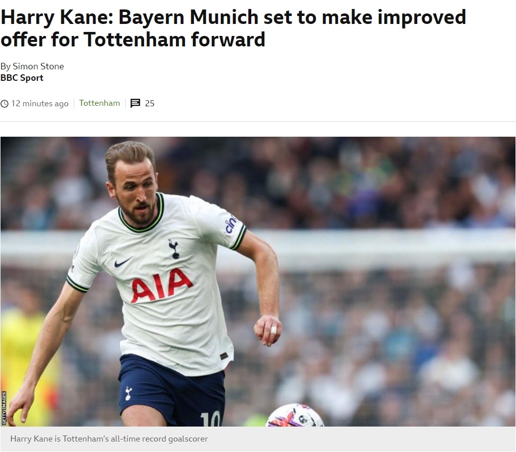 此前有消息称,拜仁出价7000万欧+浮动报价凯恩(BBC称7000万英镑),但热刺消息人士否认俱乐部收到过报价。