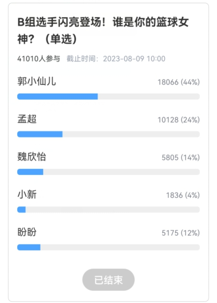 1、小组赛:40名篮球女神将被分为A、B、C、D、E、F、G、H八个组,每组均为5人。小组赛将按组别顺序分八天进行,每日吧友票选出的前四名,将晋级32强。