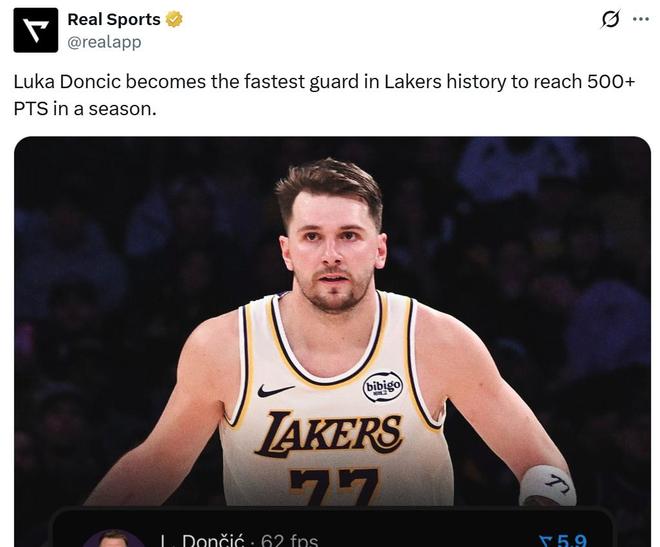 第四项:东契奇连续5场砍下30+两双,成为奥尼尔之后首位完成这一壮举的湖人球员。第五项:自从96-97赛季以来,东契奇14次首节20+超越哈登的13次独占历史第一;第六项:东契奇本赛季得分已突破500分,仅花费15场比赛成为湖人队史最快后卫。